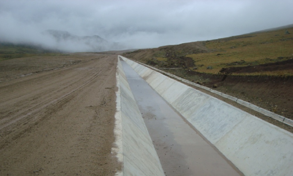 Sistema de conducción con canal de concreto armado de 30 km de longitud y capacidad de 2.8 m3/s.